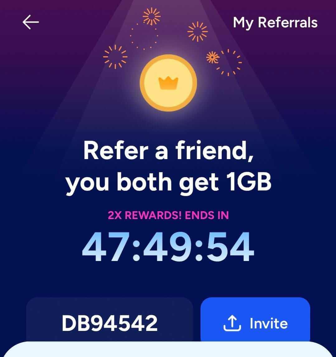 | Sign up with referral code DB94542 | 500MB free data |